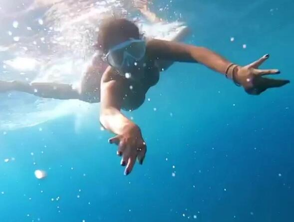C罗女友海中潜泳展现曼妙身姿 与C罗享受惬意假期