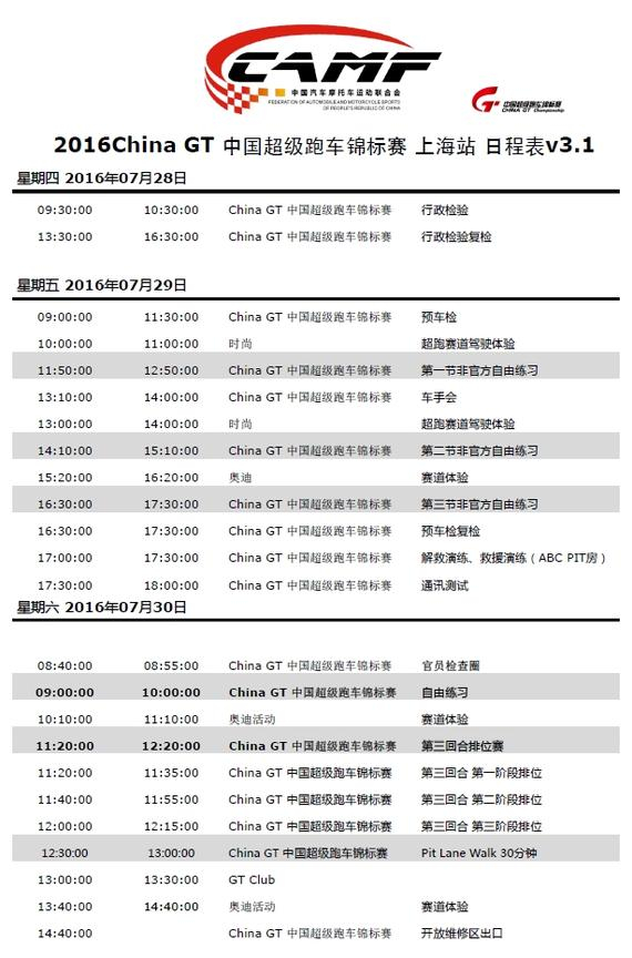 附,China GT中国超级跑车锦标赛-上海站赛程安排: