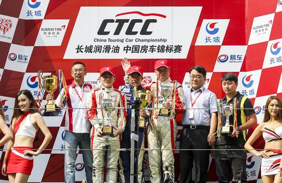 长城润滑油CTCC中国房车锦标赛中,超级杯2.0T组经过8圈的激烈角逐,最终来自上汽大众333车队的张臻东获得冠军,海马M6车队的 (Leif Tomas)雷夫·托马斯位居第二,北汽绅宝车队的朱戴维带回第三。超级杯1.6T组别方面,东风本田车队车手邹思锐杆位发车,一路稳定领跑,把冠军带 回,队友谢欣哲夺得亚军,东风悦达起亚车队车手林立峰获得季军。中国杯组北京现代纵横车队的张汉标夺冠,广汽丰田YARiS L致炫车队的叶俊辉和陈沪平包揽二三位。