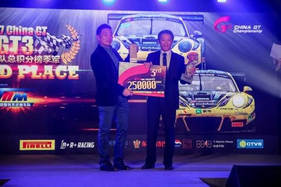 2017 China GT中国超级跑车锦标赛三大组别的年度车队杯总积分榜前三名的车队可获得年度车队奖金。