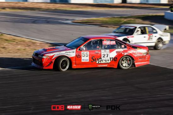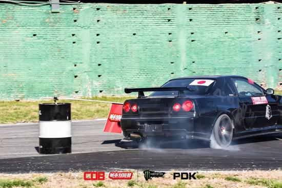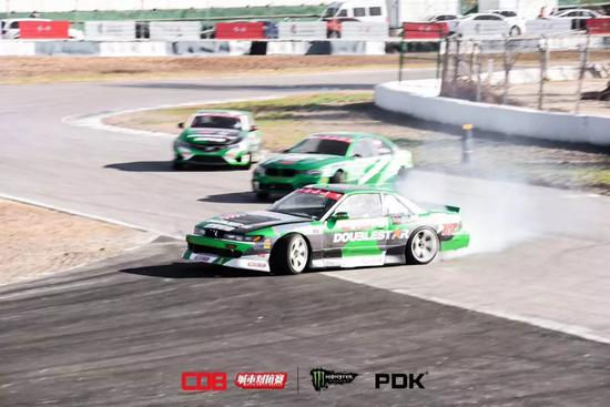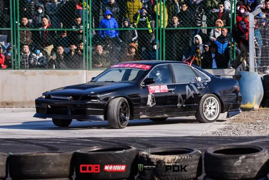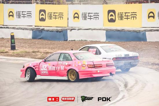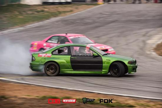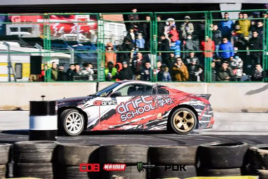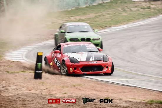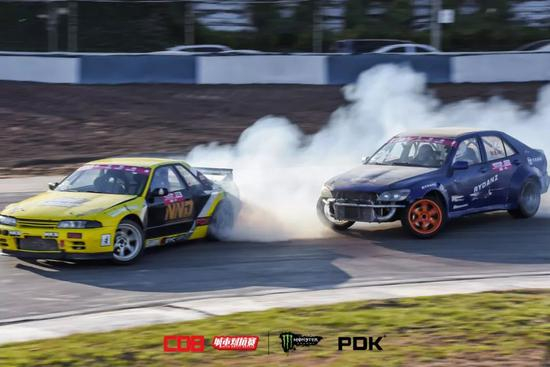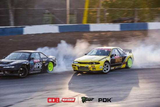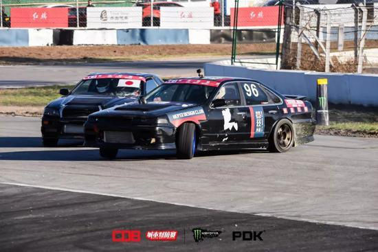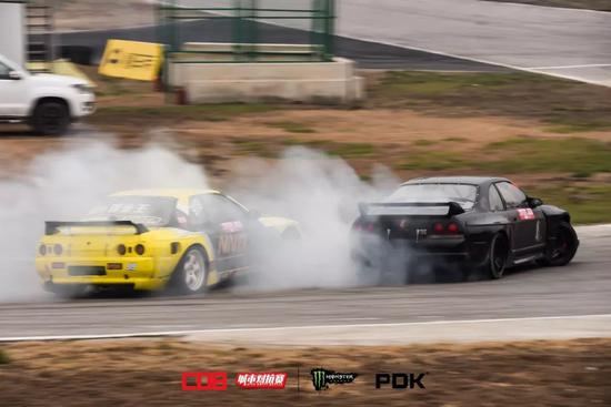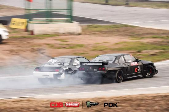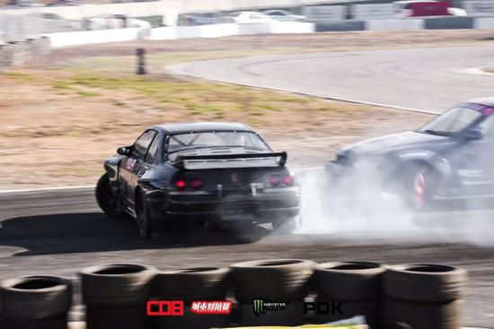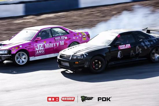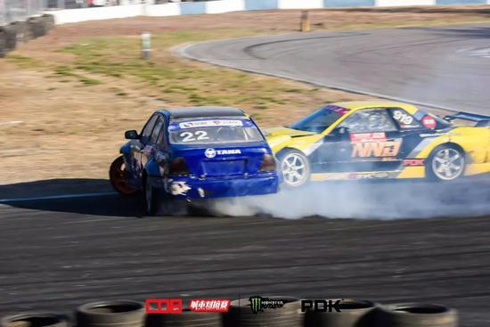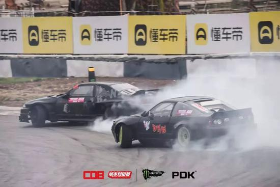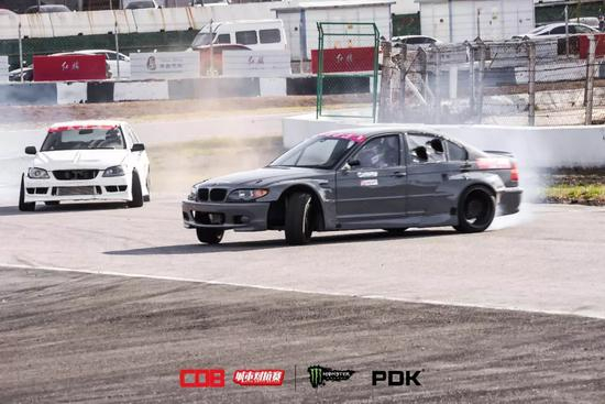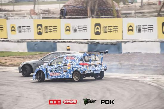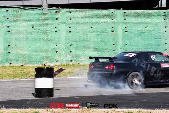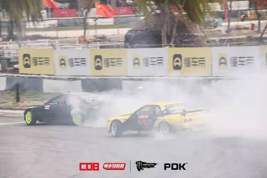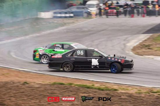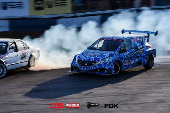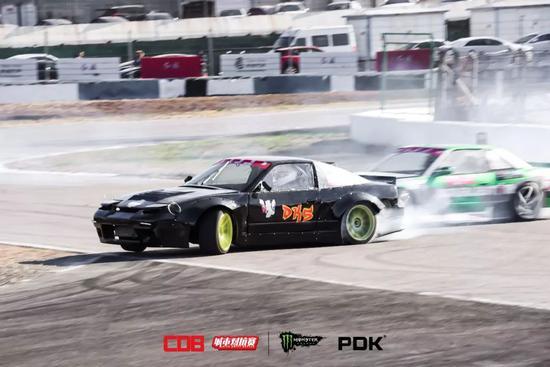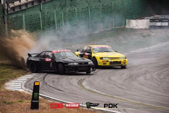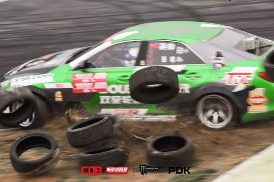 8进4晋级赛中,最激烈的一场比赛要属096号北京GTDRIFT队车手老志成与018号青岛双星轮胎队车手姜帅之间的对决!两位车手驾驶风格都很激进,追走赛全程大角度急加速飘移,引擎的轰鸣响彻整个赛场!精准的路线与跟车距离不禁让两位裁判发出了两次ONE MORE TIME的指令,最终姜帅以部分优势胜出。