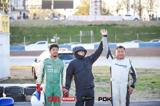 第一回合PRO组单走排位赛颁奖,冠亚季军分别是022号北京SPEEDSHADOW队车手张浩,098号北京441B.W。队车手高善波,777号廊坊DKS队车手陈晓东。
