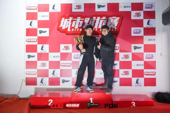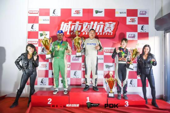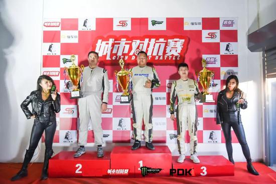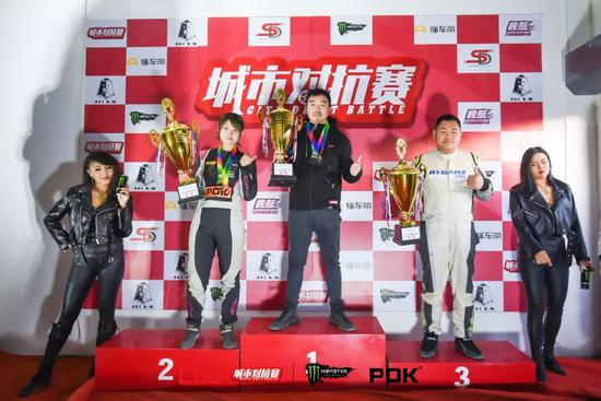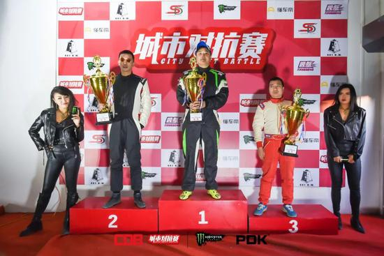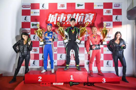 第二回合PRO组单走排位赛颁奖,冠亚季军分别是999号北京TNT队车手韩家豪,919号北京MADMOTOR队车手高璇,022号北京SPEEDSHADOW队车手张浩。