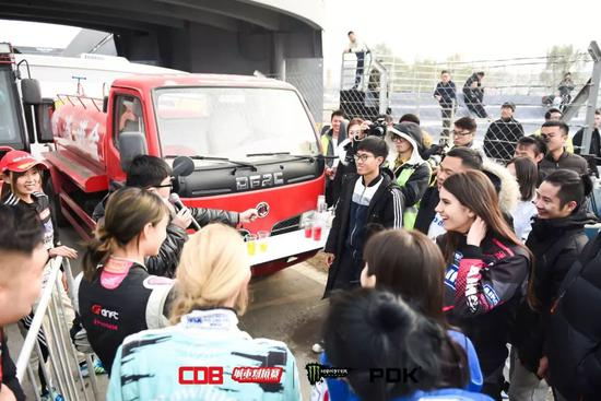 在开幕式上,来自北京、廊坊、青岛、沈阳、石家庄和新疆伊犁等城市,有14支国内顶级飘移车队,共计33位海内外顶级车手参与赛道巡游和大合影环节。CDB城市对抗赛首届举办的“国际飘移女神杯”赛事,特邀了来自美国、日本和俄罗斯的顶尖美女车手参赛,并在金港F3赛道举行了比赛开幕仪式,全场起立、奏国歌、行注目礼!