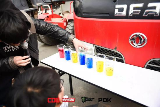 科目C水杯飘移:计时30秒双车同时飘移画8字,车手需要单手操控方向盘,另外一只手伸出窗外拿计量水杯,根据水杯剩余水量评定排名,观赏性极高获得现场观众阵阵呼声!其竞赛科目非常考验赛车飘移基本功,与《头文字D》故事主角藤原拓海的“水杯盛水”训练方式相似,是一种汽车飘移重心移动技巧,赛车飘移保持匀速和没有剧烈晃动。在本科目中俄罗斯车手Kate Naboychenko采用错误的侧面握杯,与其他车手拉开差距。本科目的冠亚季军是中国北京MADMOTOR队车手高璇,飘移画线流畅获得此科目第1名。北京441B.W。队车手曹思雨获得第2名,美国来的Kelsey Rowlings选手取得了第3名的成绩。