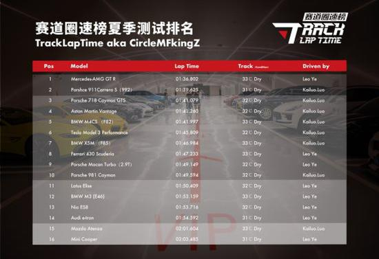 开榜至今,榜单共积累88个有效数据,车型种类涵盖超跑、性能车、SUV、电动车以及标榜运动的普通家用乘用车。2020年度夏季测试于7月31日举行并完满结束。当场测试车辆共16台,为TLT圈速榜测试史上车型数量最多的一次。