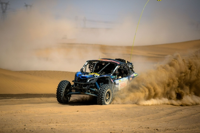 虽然在10公里的排位赛中没能占据一个好的发车位置,但杨恩东在长距离赛段中克服重重困难,以第二名的成绩完成比赛,展现了自己的天赋与实力。在22日进行的SS1赛段中,UTV组紧跟着专业组之后发车,杨恩东的庞巴迪X3赛车出发不远,便遭遇了第一次皮带断裂的故障,散热的问题让他的赛车在后面的比赛继续遭受了两次皮带断裂的折磨,再算上五次停车加油,杨恩东车组损失了最近一个小时的时间。