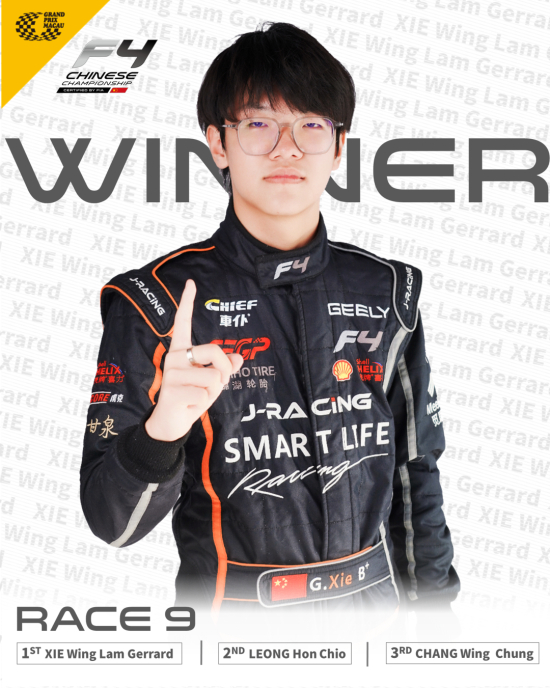 谢咏霖深知对手在赛道剩余路段难以完成超越,他只需稳住节奏即可带回头名。果不其然,驶过水塘北角弯之后谢咏霖率先冲线了终点线,梁瀚昭以2.024秒差距饮恨主场,两位中国澳门车手间的争斗则持续到了最后一刻,最终郑颖聪以0.861秒差距止步第三。李思程第四完赛,余铨耀、荆泽峰分获五六,吕景曦获得第七。