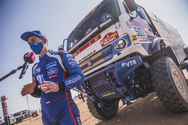 本田车手凯文-贝纳维德斯(Kevin Benavides)庆祝赢得2021达喀尔摩托车组冠军。卡玛兹车手索特尼科夫(Dmitry Sotnikov )夺得2021达喀尔卡车组冠军。