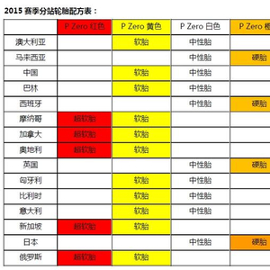 2015F1大奖赛倍耐力轮胎配方分配表