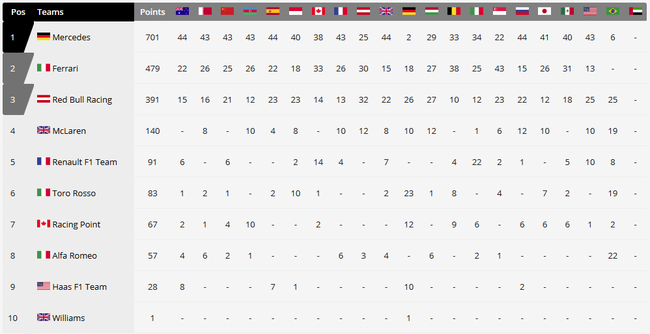 2019F1巴西站正式比赛成绩表