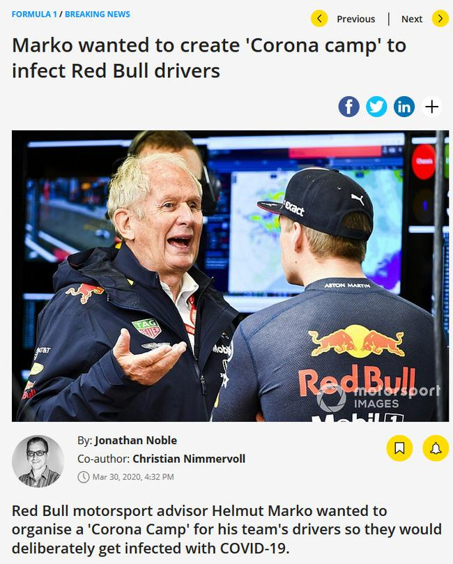 红牛车队的顾问马尔科博士提出过一个疯狂的想法:建立一个“新冠营地”,试图让所有的红牛车手感染病毒以便获得免疫。