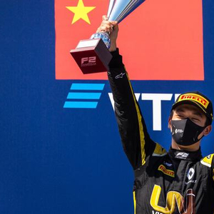 中国车手周冠宇在俄罗斯索契首次登上F2冠军领奖台