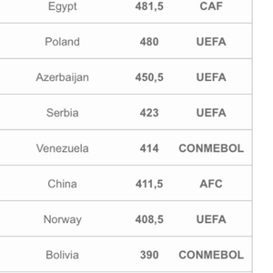 国际足球历史和统计联合会发布最新一期世界足球联赛排名