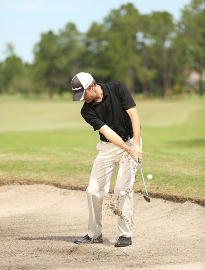 正解:多数情况下,这样并不算一杆,球员可以将球重新架回球座,而不必算作一杆。但如果球已经处于使用中,比如球员在试挥时,或者在击球的同时,球从球座上掉落,这会被算作一杆。