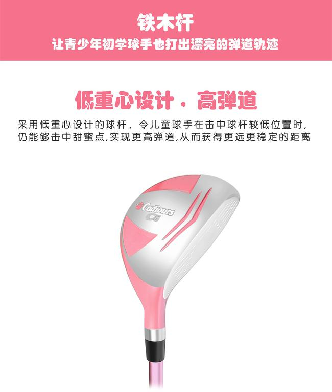 Cadiours卡迪尔采用能够获得稳而远直飞距离的‘高效结构击球面”,铁木杆采用不锈钢杆头设计,使青少年高尔夫球手使用铁木杆时感受轻盈易打。