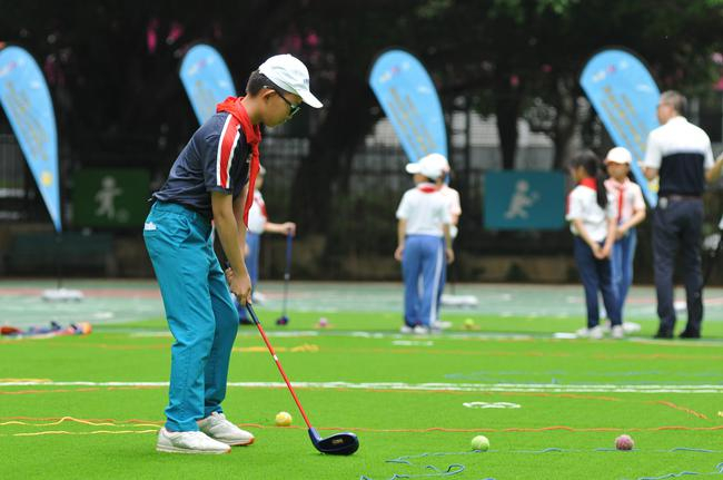 中国高尔夫球协会校园高尔夫发展计划全国示范校——深圳市福田区黄埔学校,自2019年1月以来,仅用一年半时间便建立健全了校园高尔夫“教、训、赛”三位一体的教学体系:开设的校园高尔夫体育课每年高达1040节,居全国首位;建立了有近200名队员的高尔夫年级队,每周进行4次训练;研发出“简易而不简单”的校内赛,解决了在校园中开展高尔夫球运动的场地问题。深圳市福田区黄埔学校这一系列举措,使全体学生都能在小学阶段接触和学习高尔夫球运动,真正实现了教育公平。
