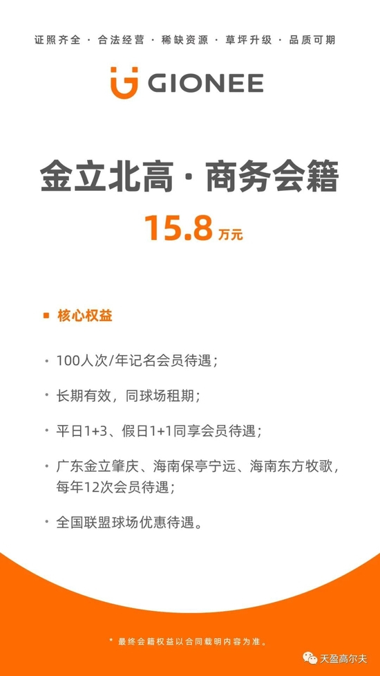 2022年8月 金立北高邀请天盈高尔夫,独家设计并代理会籍销售,面向社会各界推出金立北高•商务会籍