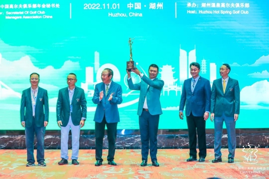 同时,自第七届总联会开始,大会秘书处形成了向承办球会颁发纪念奖杯以示感谢的传统。本次大会,和献中先生、杨青先生一起为湖州温泉高尔夫俱乐部颁发承办纪念奖杯!严东海接过承办纪念杯的一刻正式成为了这个大家庭的一员。