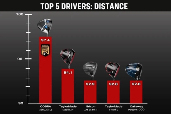 从今年各大高球媒体的评比来看,包括Golf Digest与MyGolfSpy,Aerojet系列的评价确实挺高的。尤其低后旋的Aerojet LS开球木杆,不仅名列Golf Digest的金质奖章,在MyGolfSpy的2023开球木杆评测中,更在远距榜高居榜首,得到了97.4分的高评价。