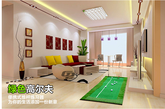 你是否希望家里有一片高尔夫果岭?闲暇之余,在家随手就可以练习推杆,那么高品高尔夫果岭值得你拥有!高品果岭草致密性高,具备良好的抗紫外线及色牢度,耐磨透水,稳定性强,适用于室内、户外。高品果岭创造了真实的落球感、推杆路线以及优异的推杆体验,媲美球场果岭。