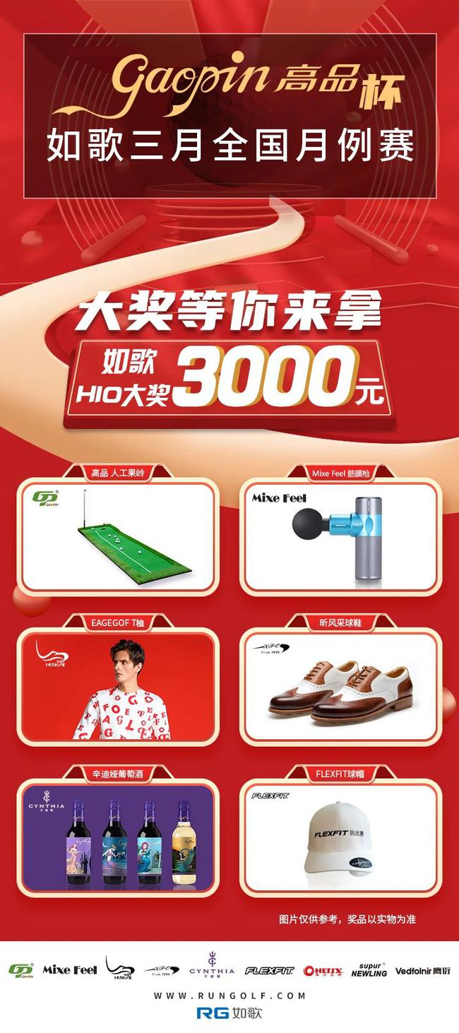 2021年3月,高品携手如歌,举办高品杯2021如歌3月全国月例赛,3月1日-31日,在如歌联网球馆及私家高尔夫月例赛下场并完成18洞,即有机会把丰富奖品带回家!(详见“如歌高尔夫”公众号:会员中心-赛事-如歌官方赛事-高品杯2021如歌3月全国月例赛)