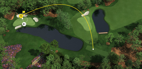 金诚开球进球道右侧短草区,第二杆选择lay up,三杆将球送到洞杯15英尺旁,下坡长推进洞,再下一城!这是中国内地球手第一次在奥古斯塔连续两洞抓鸟!当然,2004年张连伟曾在第二轮12和13号洞上演“小鸟-老鹰”。同组的扎克-约翰逊则很悲催地连续五洞吞下柏忌(+4/+11)