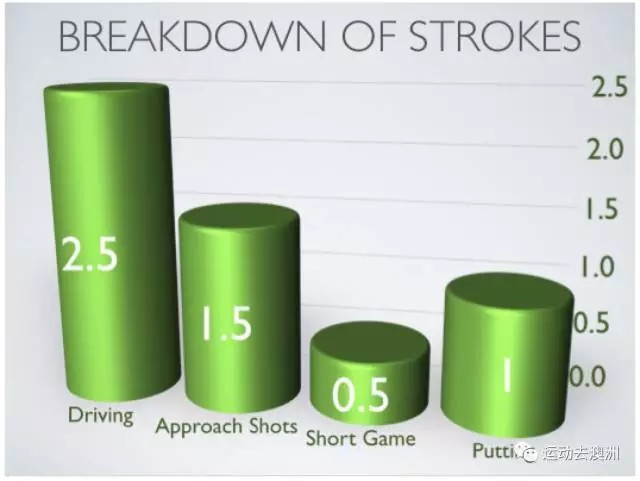 这每轮5.45杆的差距(算作5.5)来自于开球的2.5杆,攻击果岭的1.5杆,短杆(切杆,沙坑等)的0.5杆,以及推杆的1杆