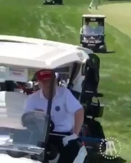 在一则由Barstool Sports分享的视频中,特朗普在自己旗下的新泽西贝德明斯特球场(Bedminster)上,开着高尔夫球车大摇大摆在果岭上横行。