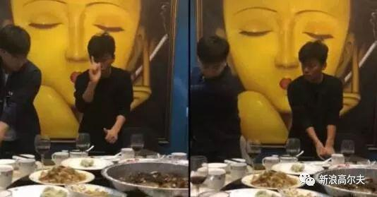 酒过三巡,王宝强开始给大家上高尔夫课了:“你到这了,到这儿再试,试一下,差不多的时候你还得要看方向……”从动作上来看,王宝强这是为在座的客人讲述击球前的准备动作:试挥、瞄准等。