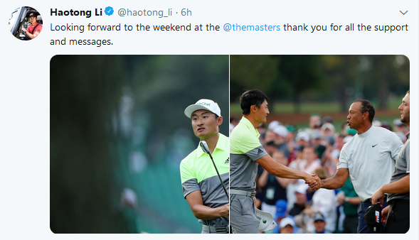 李昊桐闯入美国大师赛周末表心境:感谢你们的支持