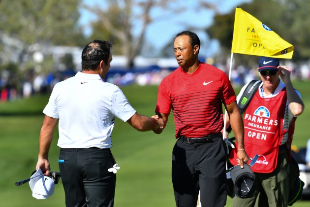 又等了五年,伍兹和莫里纳利才再次遇到一起。那也是伍兹一年以来第一次参加全阵容美巡赛。因为第四次腰部手术,他之前不得不休息。两位选手都落后领先者很远,莫里纳利打出74杆,伍兹打出72杆,获得还算不错的T23。