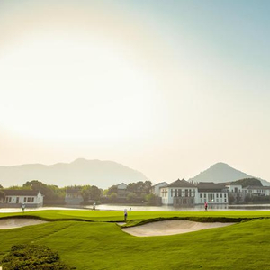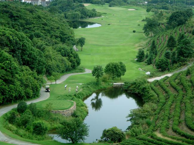 富春山居度假村是亚洲唯一丘陵地形、茶园为主题的18洞72标准杆球场。球场静卧在层叠有致龙井茶园梯田间,由曾任南非Gary Player之首席设计师Daniel J。 Obermeyer所设计。