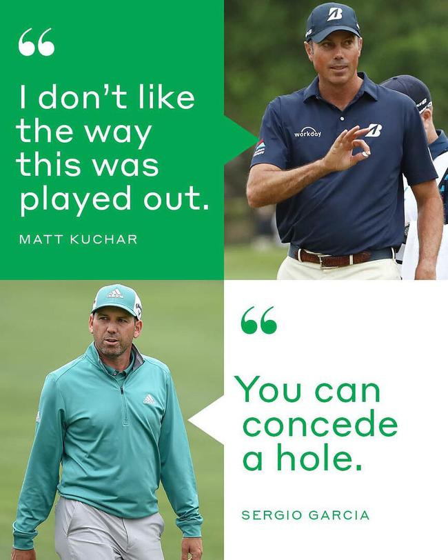 他们俩还嫌这一年不够乱吗?在戴尔科技世界比洞赛中,两人又一次因为其行为成为大众关注的焦点。在四分之一决赛中相遇,他们打奥斯汀乡村俱乐部七号洞的时候,加西亚面对一个短推,马特-库查尔宣称对于这样一个距离的短推他会给OK,可是加西亚的动作太快了,过去就推,而他没有推进。裁判表示根据规则,你不可以事后给推杆OK。让问题更严重的是,几个洞之后,加西亚建议马特-库查尔作为还礼,给一个推杆OK。马特-库查尔最终赢得了那一场对决,几天之后,两人制作了一个自嘲的视频,事件算是过去了。
