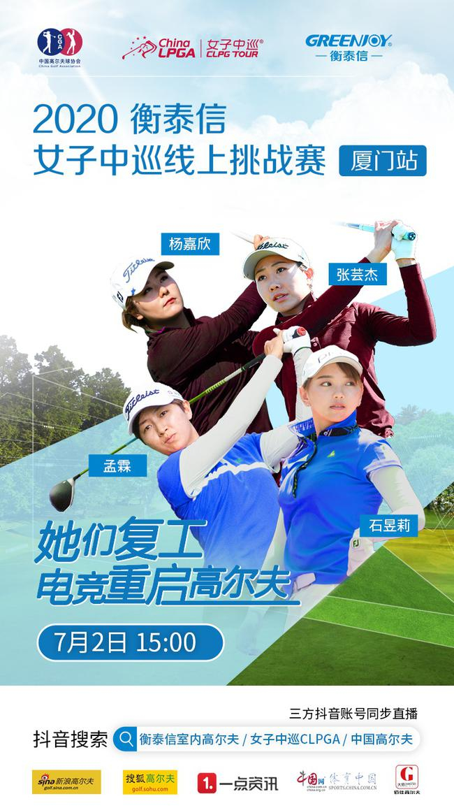 7月2日15:00,衡泰信女子中巡线上挑战赛·厦门站将在厦门东方高尔夫练习场室内球馆隆重举行,并将通过女子中巡CLPGA、衡泰信室内高尔夫、中国高尔夫三大抖音账号和女子中巡官方微博账号CLPGATour进行现场实况直播。赛事奖金30000元,额外任务奖励3000元,总计33000元。