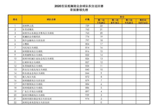 7月24日,2020首届观澜湖业余球队积分巡回赛开幕仪式暨常规赛第一轮结束之后,各参赛球队的首场积分排名也正式公布。