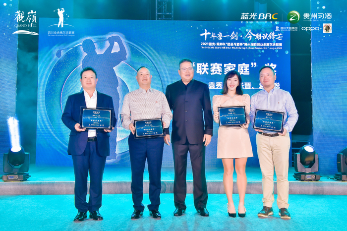 本场颁奖仪式,颁发了一项特别奖——“联赛家庭”奖!这个奖项的获得者们,都是联赛球员,而且他们是真正的有着血缘关系的一家人!他们就是:袁先生、袁秀强(袁先生弟弟)、袁鸣聪(袁先生女儿)、张晋(袁先生外甥)!值得一提的是,小将袁鸣聪在颁奖盛典这天打了HIO(8号洞),这也是她在本届联赛打的第二个一杆进洞(第一个HIO在17号洞),真可谓巾帼不让须眉。