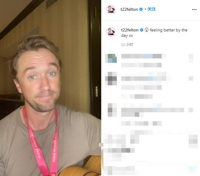 在评论区域,汤姆-费尔顿的粉丝十分激动他身体没有问题。一个粉丝写道:“言语无法表达我现在多么感恩,多么安心。我爱你,很高兴你回来了。”