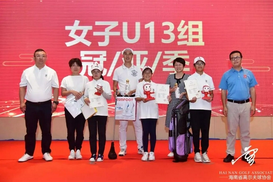 下午14:30,颁奖仪式在清水湾假日度假酒店宴会厅举行,出席本次颁奖仪式的领导和嘉宾有:中高协委员栗前明、邓先群,省高协副主席兼秘书长莫壮飞,省高协副主席兼副秘书长、清水湾球会总经理何冠军,省高协副秘书长、海盛体育运营总经理杨升,仁怀高尔夫酒销售有限公司海南省区经理陈振潜,美国Superkit青少年高尔夫专业装备中国区市场总监王序汉,北京溢亨科技有限公司总经理吴志鹏,上足科技副总经理王海峰,Superkit专业高尔夫装备海南区总代理曲冬雷,海南清水湾高尔夫球会运作总监郭子龙,海口观澜湖高尔夫球会高球总监董兴华,赛事裁判长王献飞以及全年各分站赛承办球场代表,各组别参赛球员和家长、教练等100余人参加和见证了此次总决赛的颁奖仪式。