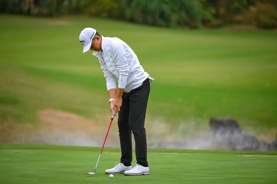 与罗学文同组的马成姚其实在前九洞也未能找到自己的状态,在以37杆转场之后在第10洞吞下当日第2个柏忌。可是随着第11洞抓下当天第1只小鸟,他又逐渐找回了信心。“尤其是第15洞之后,我想着一定要抓两个鸟跟他们打平,或者再打三个鸟把比赛打赢。”