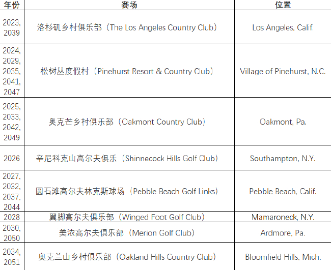 未来美国公开赛的举办场地: