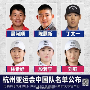 杭州亚运中国高尔夫队6人组成 殷若宁吴阿顺领衔