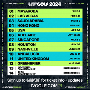 沙特阿拉伯资助的联赛宣布的赛程中包括14站比赛,其中12站比赛的日期已经明确,常规赛季最后一站比赛,也就是确定个人总冠军的那站比赛,以及团体锦标赛的日期与场地没有公布。去年,迈阿密郊外的特朗普多拉球场举办了团体锦标赛。
