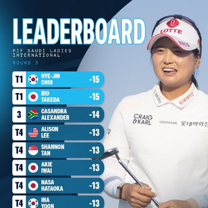 韩国选手崔慧珍在首轮比赛后就成为并列领先者,今天在利雅得高尔夫俱乐部进行的第三轮比赛中打出65杆(-7),再次攀升至领先榜榜首。