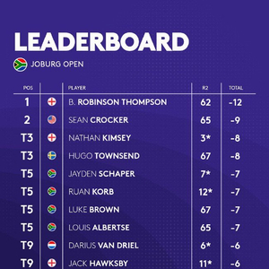 瑞典选手雨果-汤森(Hugo Townsend)和内森-基姆西(Nathan Kimsey,后者第二轮还有15洞待打)落后一杆,并列位于第三位,而南非四人组路易斯-阿尔伯特塞(Louis Albertse)、卢克-布朗(Luke Brown)、鲁安-科布(Ruan Korb)和杰登-沙佩尔(Jayden Schaper)——后两位尚未完成第二轮——同以低于标准杆7杆的成绩并列第五。