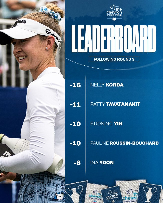 北京时间4月26日,内莉-科达周六一度将领先优势扩大到8杆,但随后连续错失一系列短推,最终在雪佛龙锦标赛第三轮打出70杆,低于标准杆2杆,带着5杆优势进入决赛轮。这是她职业生涯中54洞后的最大领先优势。