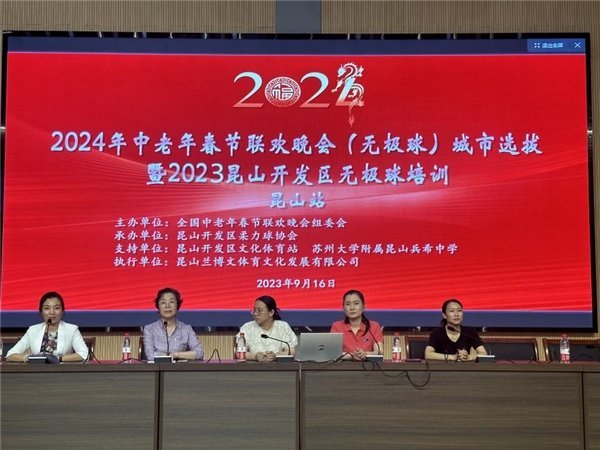 9月16日,“2024全国中老年春节联欢晚会(无极球)城市选拔暨2023年昆山开发区无极球培训活动”在苏州大学附属昆山兵希中学召开,近百名中老年健身爱好者兴致勃勃地参加活动。