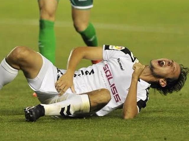 男人最要害的部位,就是两腿之间。踢球时被闷一下,都会在几分钟内疼得死去活来。在昨夜的西乙赛场上,一名球员要害部位重伤被缝合十针,这实在是“惨绝人寰”。