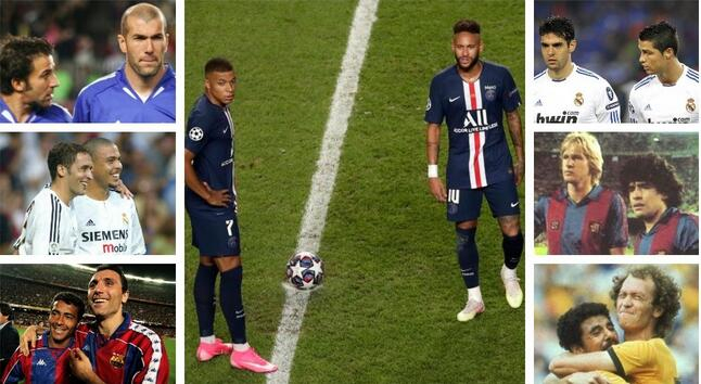 巴黎圣日耳曼折戟欧冠决赛,内马尔与姆巴佩这对黄金组合未能拿到冠军。《马卡报》列举过往没拿过欧冠的巨星双人组合,其中包括球王马拉多纳、外星人罗纳尔多等大牌。