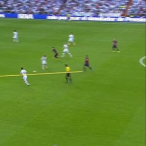 然而,缺少了拉基蒂奇之后,右路的防守出现问题,皇马左路的攻势非常活跃,阿尔维斯不得不将精力完全投入防守当中。C罗、马塞洛,以及自由活动的伊斯科,在左路(也就是巴萨的右路)施加了巨大压力。
